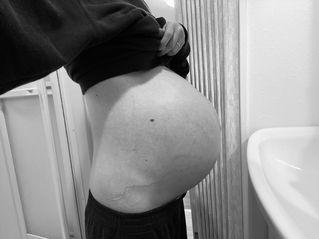 現にこのクリームでここまでお腹が大きくなっても妊娠線はできていませんでした。